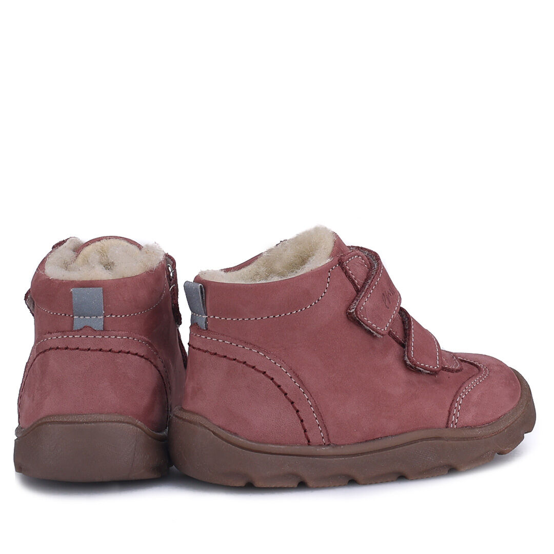 Fioletowe trzewiki dziecięce Emel kodiak EV2725d-2 wykonane zostały z wysokiej jakości skóry naturalnej nubukowej. Rolę śródpodszewki pełni tu nowoczesna membrana Te-por, która nie tylko chroni przed przemakaniem, ale także zapewnia stopom odpowiednią oddychalność. Skórzane fioletowe buty zimowe dziecięce Emel Kodiak wypełnia solidne ocieplenie z naturalnej wełny owczej. Jest ono niezwykle przytulne w dotyku, skutecznie izoluje od zimna i gwarantuje małym stopom najwyższy komfort użytkowania.