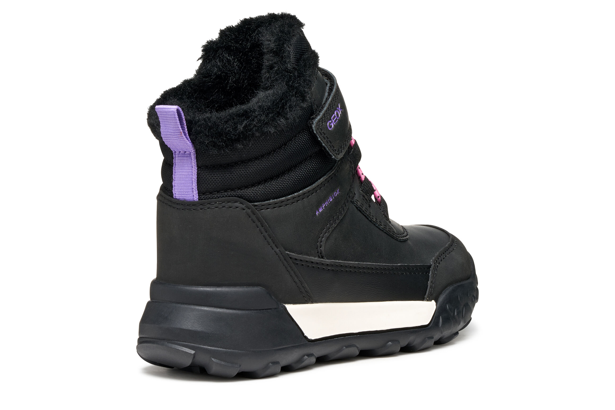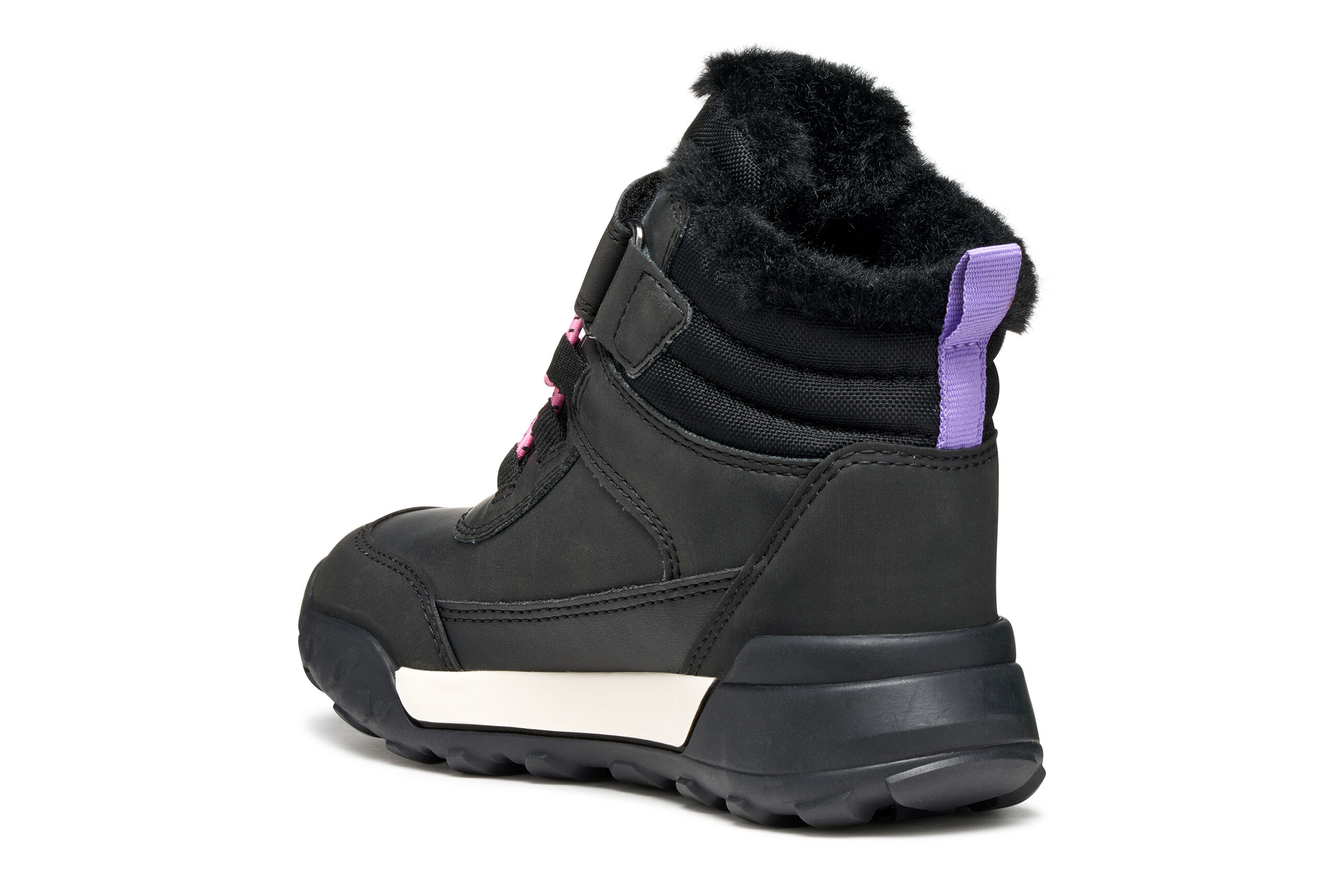 Wykonane z woskowanej skóry ekologicznej i nylonu w czarnej palecie barw z liliowymi detalami, gwarantują komfort i oddychalność, utrzymując małe stopy w suchości, nawet w ekstremalnych warunkach pogodowych.