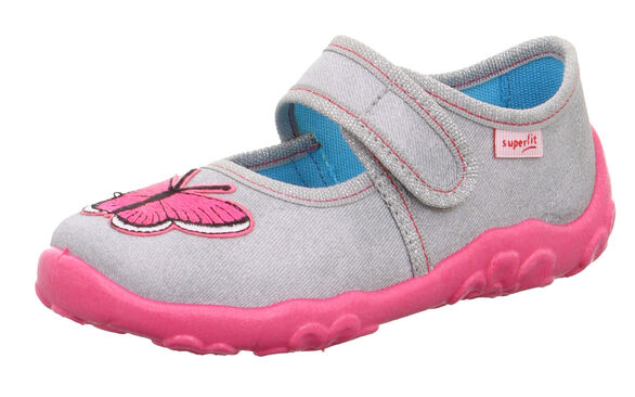 Kapcie Bonny z aplikacją motyla na przodzie są po prostu urzekające. To idealny kompan zabaw w przedszkolu, szkole czy w domu. Wykonane z oddychających materiałów tekstylnych. Lekka i elastyczna podeszwa z uroczymi motywami kwiatowymi nie pozostawia śladów na podłodze. Dodatkowo podeszwa ma właściwości oddychające.